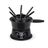 O aparelho conta com uma panela preta que, além de elegante, distribui o calor de forma uniforme, garantindo que seu fondue se mantenha na temperatura ideal por mais tempo. O conjunto é composto por 11 peças, incluindo a panela, um suporte de base, o queimador e seis garfos coloridos que facilitam a identificação por cada convidado, além de outros acessórios essenciais.