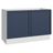 O acabamento de alta resistência da estrutura é em branco e das portas em Azul. Possui uma textura suave ao toque, trazendo leveza e sofisticação ao ambiente. O destaque fica por conta dos puxadores ponto em ouro envelhecido, feitos com metal resistente, trazem personalidade e um charme único. Outro diferencial está no detalhe chanfrado das frentes, que forma molduras elegantes e dá profundidade, refletindo o estilo americano com um toque moderno.