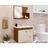 Conjunto de Banheiro Balcão Suspenso Isa c/ Cuba 55cm e Armário c/ Espelho Amendoa/Off White - MGM