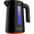 O design moderno em preto conta com jarra independente da base, que pode ser levada diretamente à mesa.