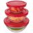As tampas são vermelhas e possuem fechamento hermético que oferece excelente vedação, garantindo melhor conservação dos alimentos.