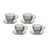 Com 4 xícaras e 4 pires em cristal, o conjunto destaca-se pela coloração ônix e borda dourada, que adicionam um ar contemporâneo e refinado a qualquer ocasião, do café da manhã ao chá da tarde.