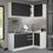 O acabamento da estrutura é branco e as portas e frentes são pretas. O processo é feito em Pintura Poliéster com 7 camadas que protegem o móvel dos efeitos do álcool da água e do calor.