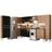 O acabamento interno e externo é nas cores amadeirado Rustic e preto, em Pintura Poliéster com 7 camadas de proteção que oferece resistência contra os efeitos da água e do calor. Ela é dividida em oito módulos independentes: paneleiro duplo, balcão de canto reto, armário aéreo de canto reto com duas portas e adega, balcão de pia, armário aéreo com duas portas e dois nichos, balcão com 2 portas, armário aéreo com 2 portas e o paneleiro simples.