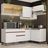 Os armários aéreos precisam ser fixados na parede. Os módulos de canto podem ser montados tanto para o lado direito quanto para o lado esquerdo, conforme a necessidade do ambiente.