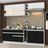O acabamento da estrutura interna, externa e das portas dos aéreos são brancas. As portas dos balcões e frentes das gavetas são pretas. Os processos são feitos em Poliéster Protetor ecológico de alta resistência, que protege o móvel dos efeitos da água, do álcool e do calor.
