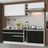 O acabamento da cozinha é branco, com exceção das portas e frentes das gavetas dos balcões, que são pretas. O processo é feito em Poliéster Protetor ecológico de alta resistência, que protege o móvel dos efeitos da água, do álcool e do calor.
