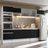 O acabamento da estrutura da cozinha é branco e as portas e a frente da gaveta são pretas. É feito em Poliéster Protetor ecológico, que consiste na aplicação de 7 camadas resistentes a álcool, água e calor.