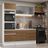 O acabamento da estrutura interna e externa é branco. As portas e a frente da gaveta são no padrão amadeirado Rustic, com exceção da porta do aéreo de 60 cm, que é branca. O processo é feito em Poliéster Protetor ecológico, que consiste na aplicação de 7 camadas resistentes a álcool, água e calor.