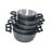Itens Inclusos: 05 Panelas de Alumínio Batido Cinza / 05 Tampas de Vidro