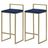 Kit com 2 Banquetas Decorativas Selena Base Gold Veludo Azul Gran Belo