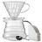 O Kit Contém: 1 Jarra 360 ml, 1 Pacote de filtro V60-01, 1 Suporte V60-01 de acrílico Transparente, 1 Colher de medida.