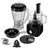 - Possui acessórios que executam múltiplas funções: 01 lâmina de ralar, 01 lâmina de fatiar, 01 lâmina de processador 01 espremedor, 01 adaptador de lâmina, 01 jarra, 01 copo de liquidificador, 01 base de multiprocessador