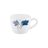 Xícara feita em vidro com detalhes em azul, preto e cinza. Possui capacidade de 220ml.